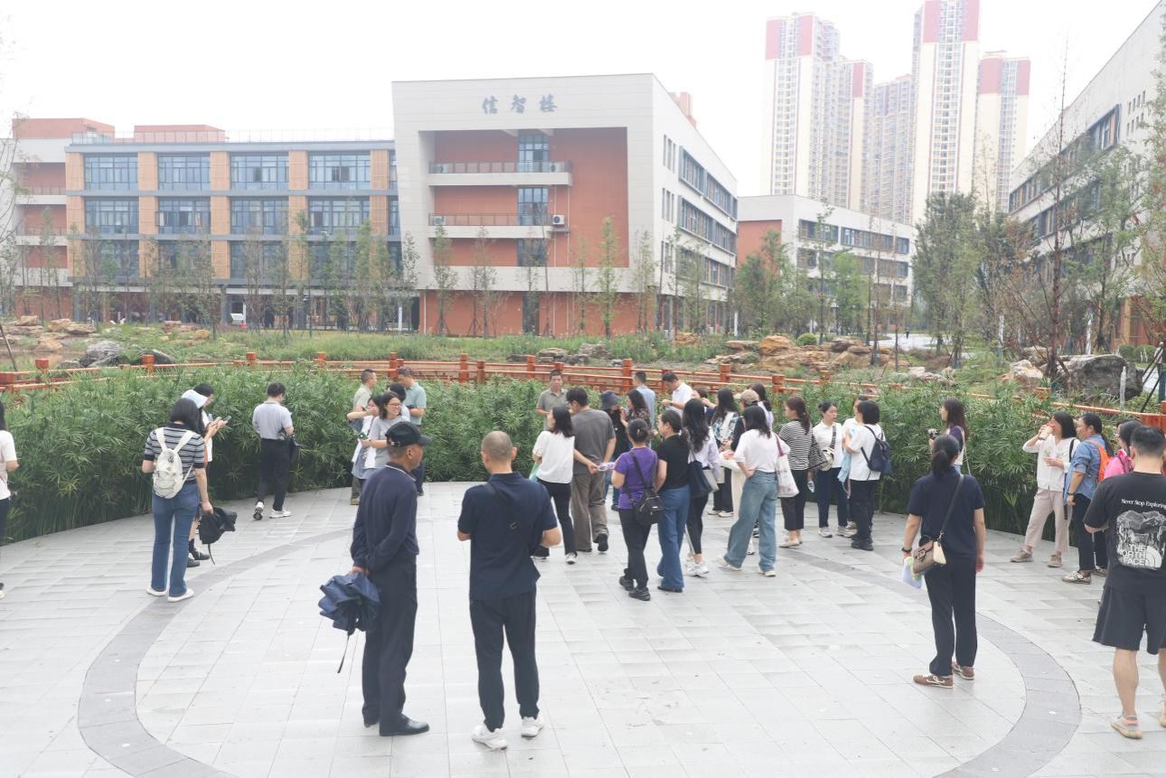 当日上午,考察团队统一乘车前往茶园新校区,实地探访校园建设成果。走进校区,布局科学、功能分区明确的现代化楼群映入眼帘,大家先后参观了宽敞明亮的标准化教室、配备先进仪器的实验室,以及涵盖餐饮、服务等功能的生活配套区域。“功能齐全、校城共享、产教融合、研用一体”的建设理念,让新校区既显大气又接地气。考察中,不少干部结合自身岗位展开交流,探讨如何利用各种资源,优化服务效能,助力校区发展,现场讨论既具针对性又富建设性,切实将“考察”转化为“献策”。