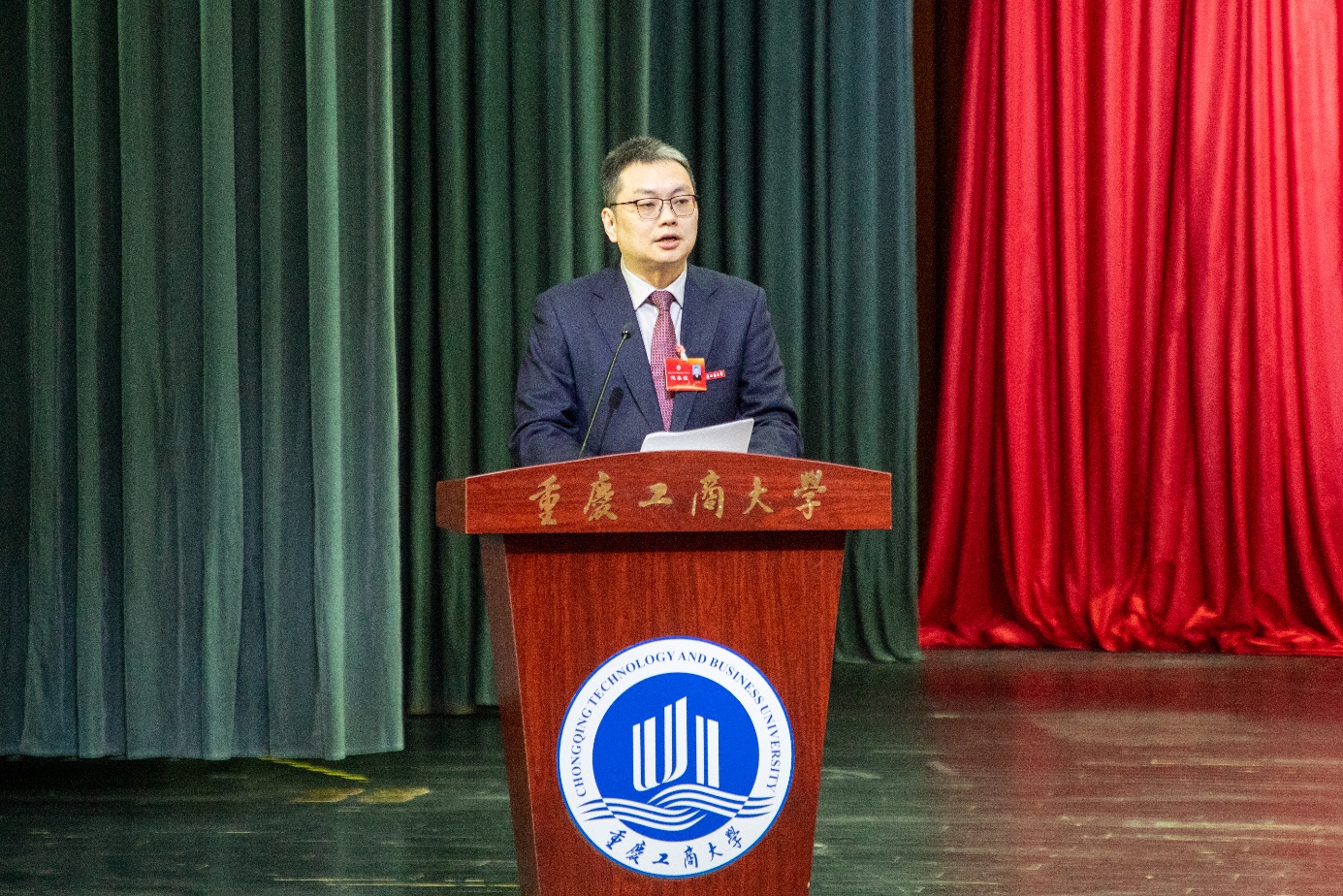 闭幕式上,大会通报了教代会、工代会“三个委员会”选举结果,表彰了优秀工会干部和工会积极分子,通过了《重庆工商大学教职工代表大会实施办法(修订)》《重庆工商大学工会会员代表大会实施办法》,通过了大会决议。代表们一致认为,过去五年是学校发展史上具有里程碑意义的五年。学校工作报告全面总结了过去五年学校在党的全面领导下攻坚克难、锐意进取,紧扣国家重大战略和重庆经济社会发展要求,在立德树人、学科建设、开放办学等方面取得的显著成就,系统梳理了办学治校的宝贵经验,客观分析了存在的短板不足,科学研判了“十五五”时期学校发展面临的战略黄金机遇期,谋划部署了未来发展的“八聚焦”“八突破”重点任务。报告政治站位高、战略视野宽、目标定位准、工作举措实,是引领学校新一轮高质量发展的纲领性文件。